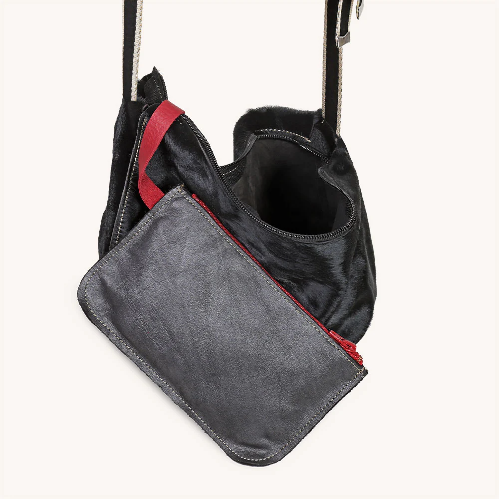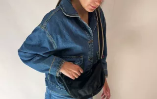 Dotée d’une bandoulière en sangle, réglable par un noeud, elle se porte confortablement à l’épaule ou en diagonale.