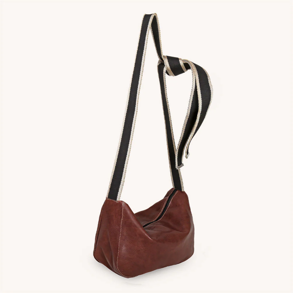 Dotée d’une bandoulière en sangle, réglable par un noeud, elle se porte confortablement à l’épaule ou en diagonale.