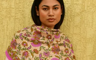 Le grand foulard Tolita Rose arbore un beau motif fleuri et des couleurs à la fois douces et vives qui réhausseront toutes les tenues.