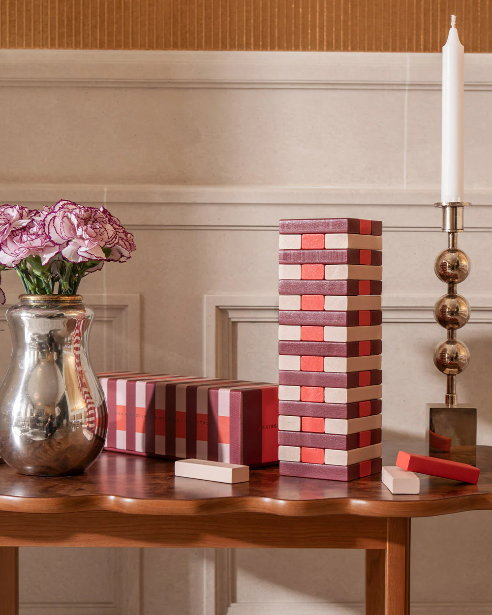 Découvrez notre Tour chancelante, un jeu apprécié et agréable avec une nouvelle touche colorée et magnifique, tout aussi impressionnant qu’il soit joué ou affiché. Fabriquée entièrement en bois, la Tumbling Tower mesure 28,5 x 8,5 x 8 cm.