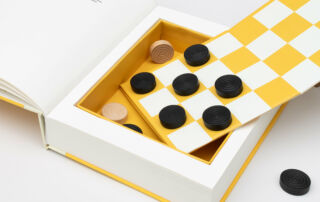 Ouvrez ce livre relié à couverture toilée et vous découvrirez un plateau et des pièces soigneusement rangés. Le jeu de dames, aussi appelé jeu de dames, est un classique pour tous les âges, offrant d’innombrables occasions de compétition amicale. Une fois la partie terminée, exposez le jeu sur votre étagère ou votre table basse. Les règles du jeu sont disponibles en quatre langues.