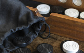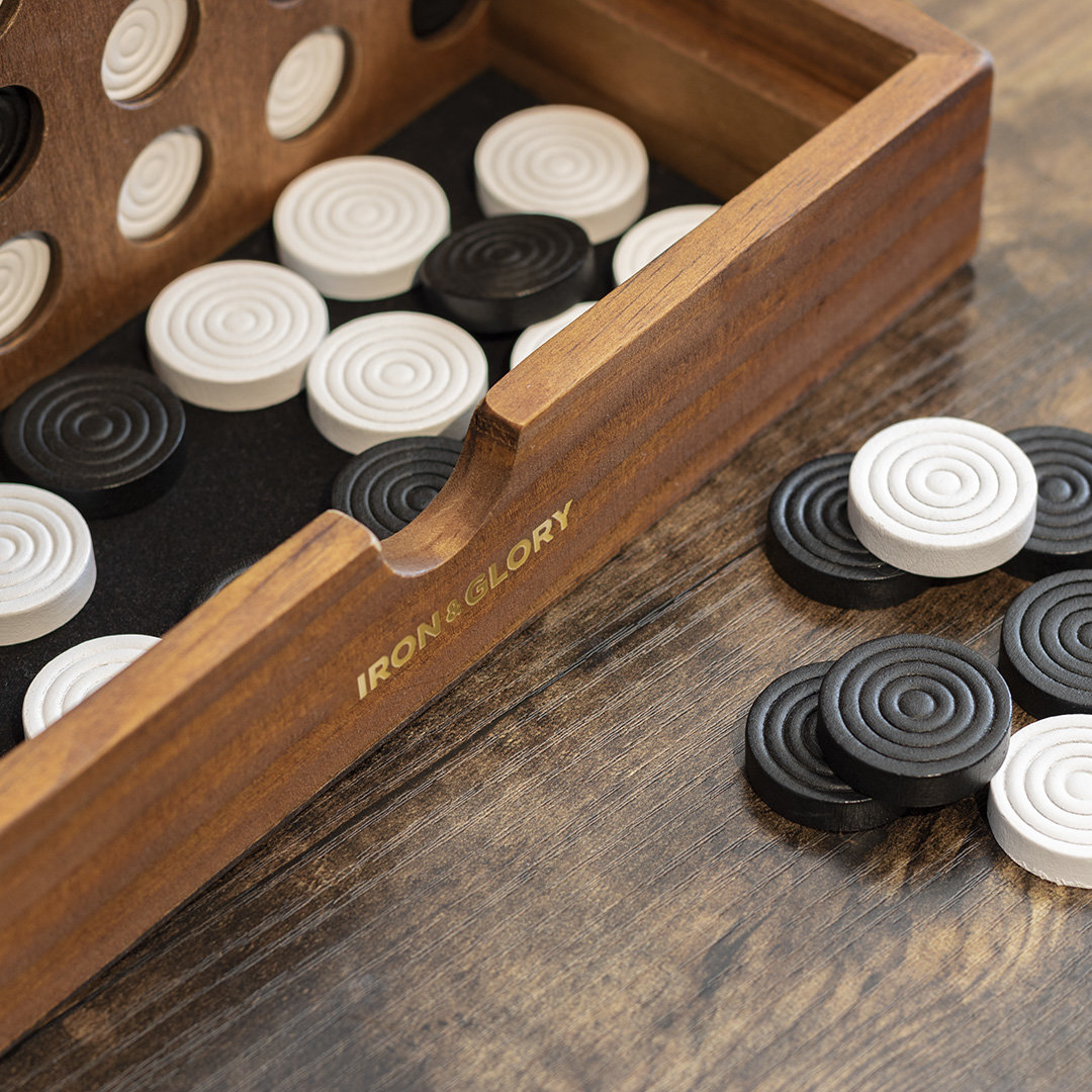 Jeu de stratégie classique de quatre en ligne pour deux joueurs. Reliez quatre de vos pions horizontalement, verticalement ou en diagonale tout en empêchant votre adversaire de faire de même. Comprend un plateau de jeu en bois de luxe, 42 pions en bois, un sac en coton et un guide de jeu.