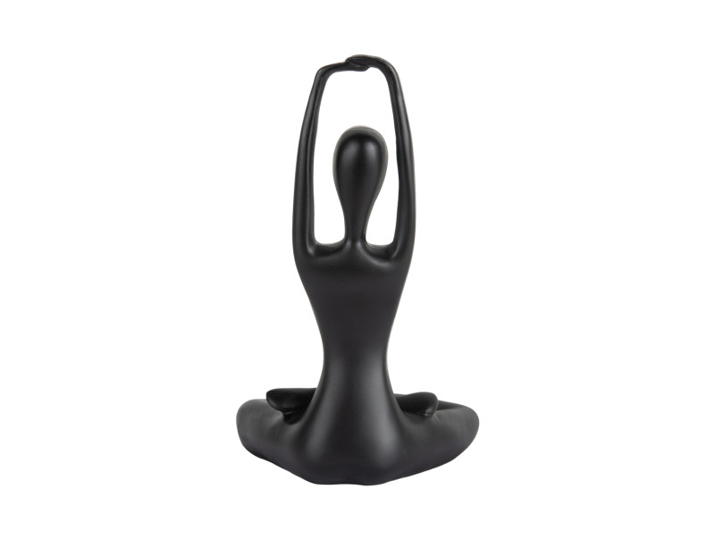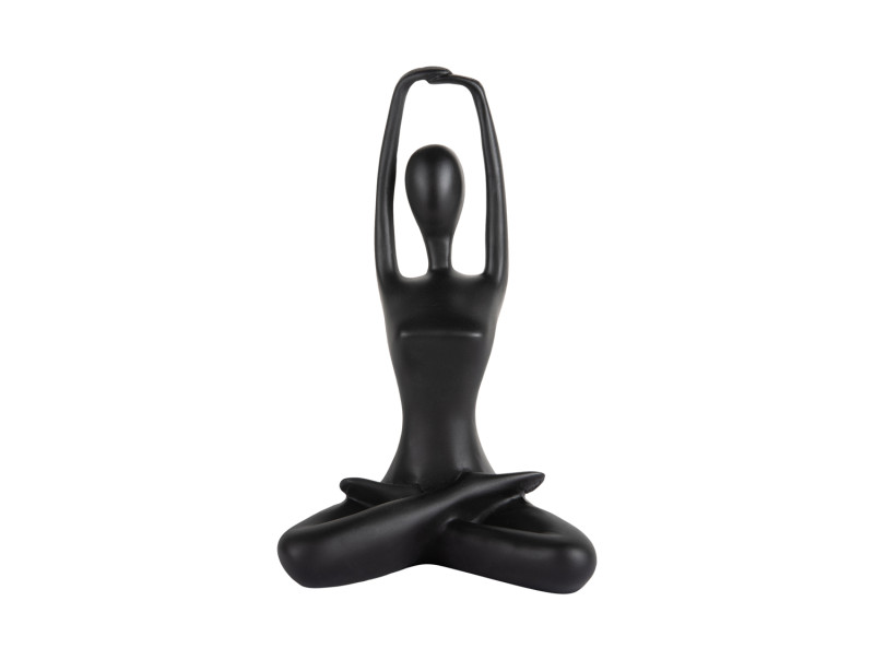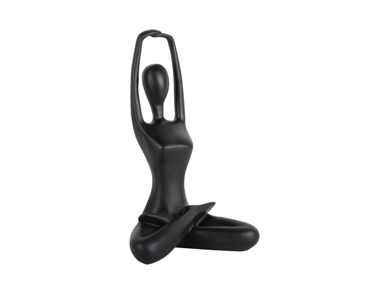 Cette élégante sculpture de yoga apporte sérénité et harmonie à votre intérieur. Représentant une posture de yoga raffinée et dotée d’une finition lisse en polyrésine noire, elle attire discrètement le regard et crée une ambiance chaleureuse dans n’importe quel espace.